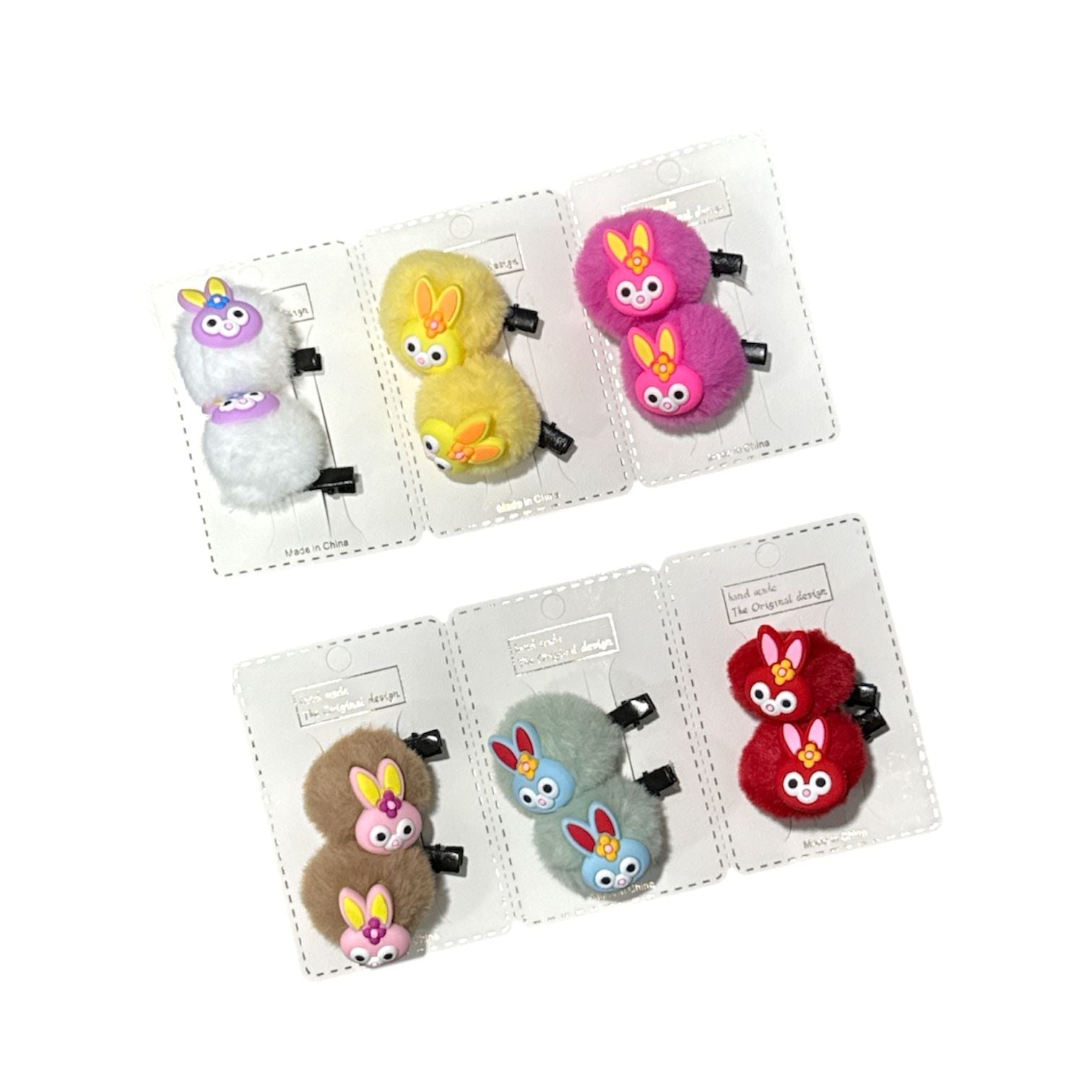Par de Pasadores con pompones y figuras de diferentes colores.