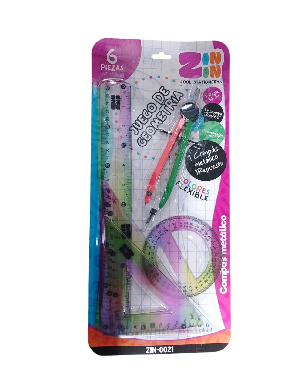 El juego de geometría flexible colores incluye: -1 Regla de 30 cm. --Escuadra flexible de 45º. -Escuadra flexible de 60º....