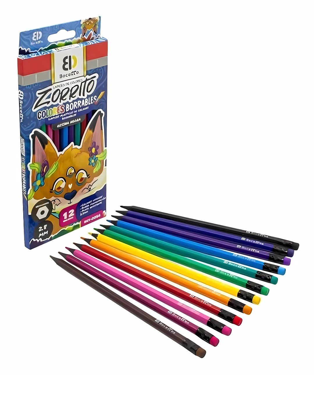 Lapices de colores plastico borrable 12 pzas bct-0054