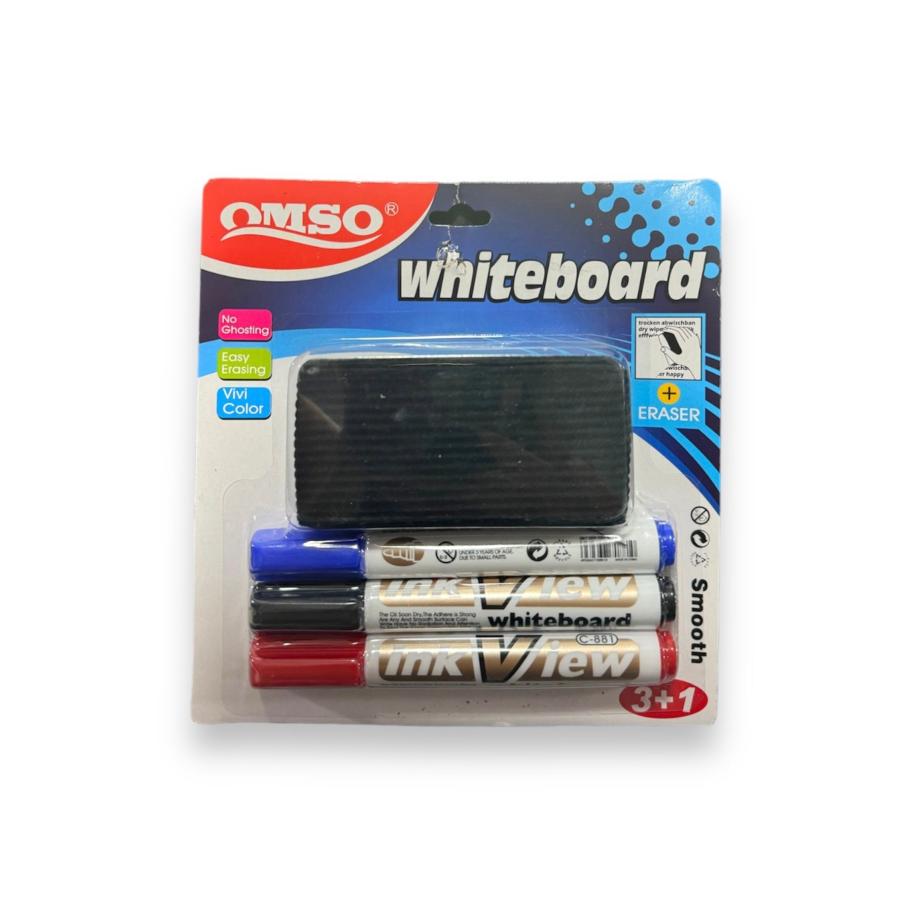Set de marcadores y borrador para pizarrón blanco punta cincel