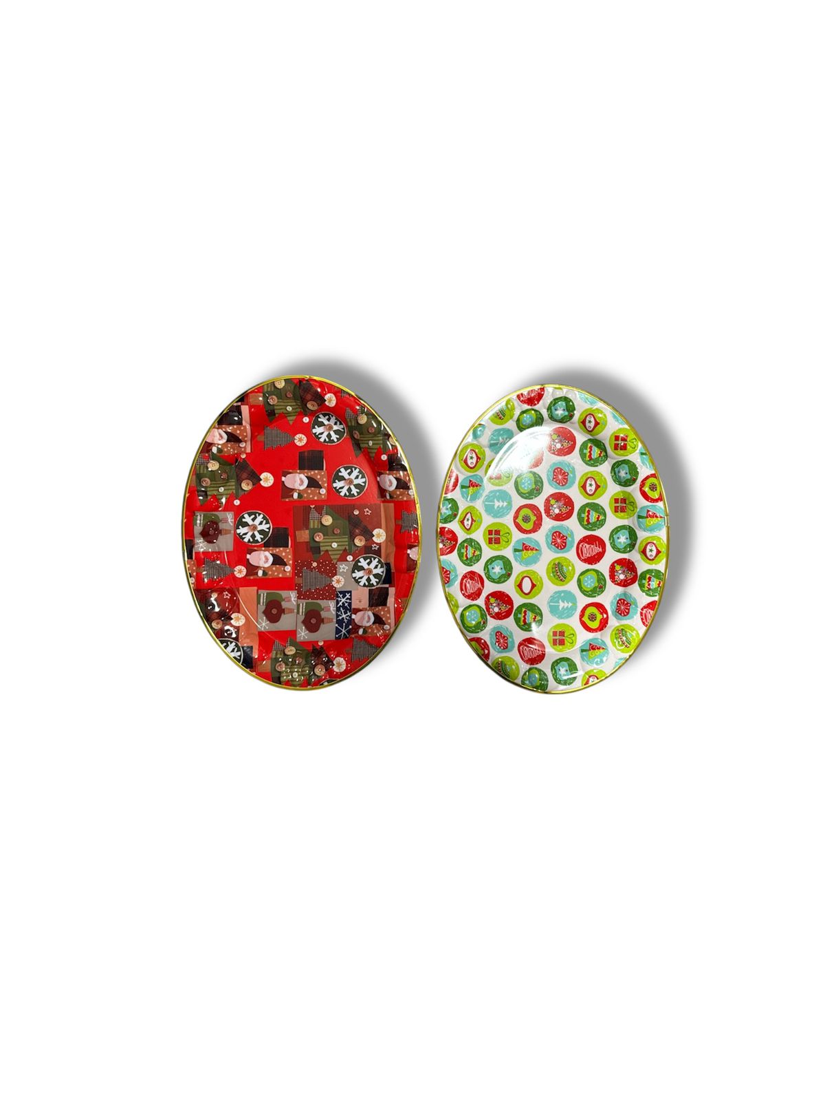 Bandeja onda,ovalada con tematica de navidad 28x37cm Envio sujeto a disponibilidad