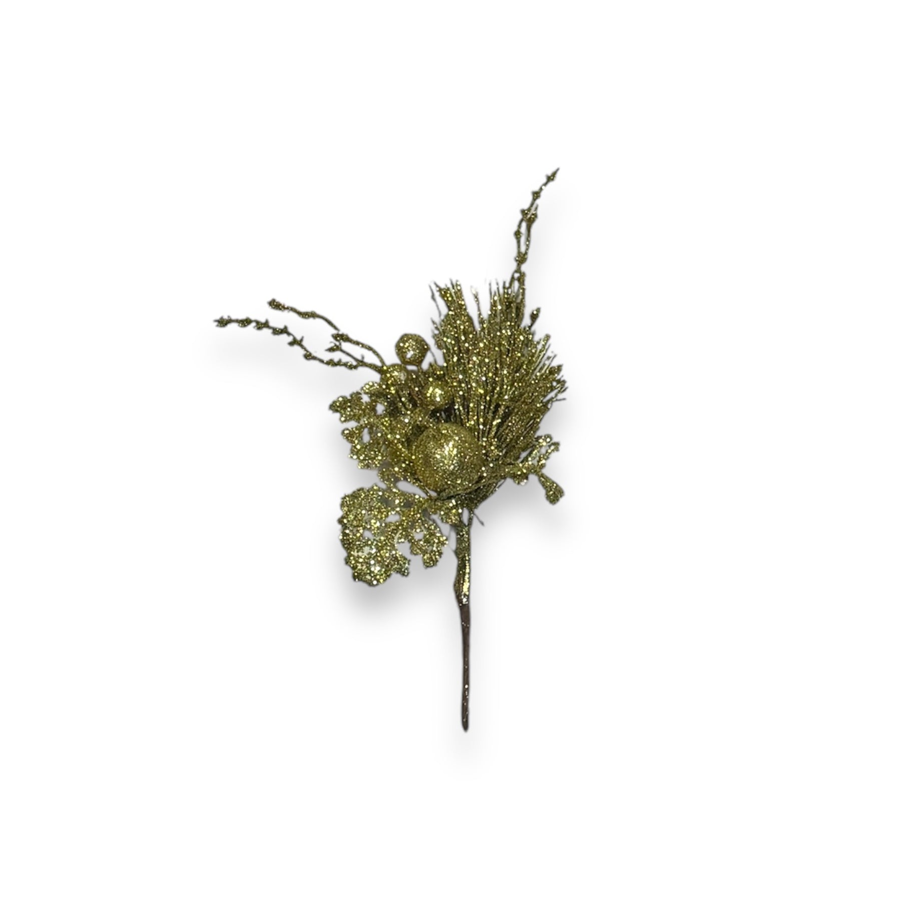 Picks para decoración navideña. Ideal para centros de mesa, esferas, regalos, coronas y guirnaldas. Medida: 23cm.