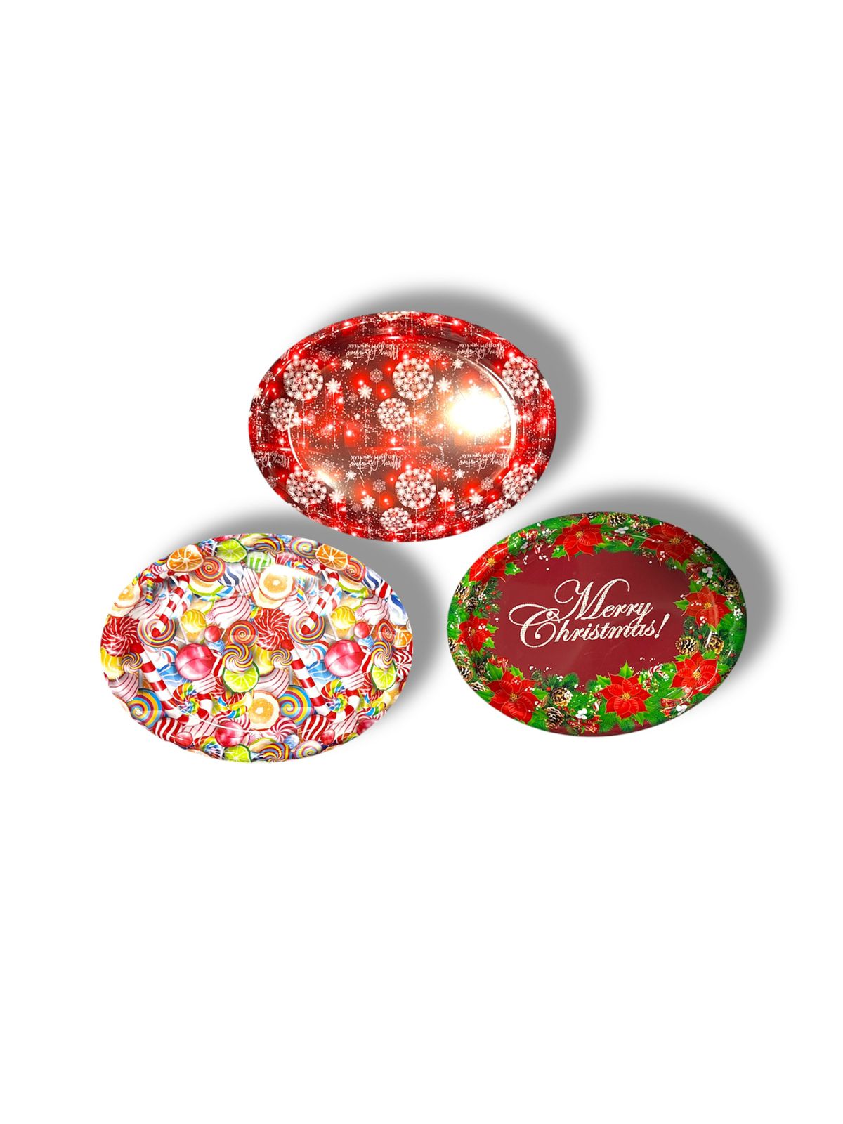Bandeja onda,ovalada con tematica de navidad diametro 41.5x31cm Envio sujeto a disponibilidad