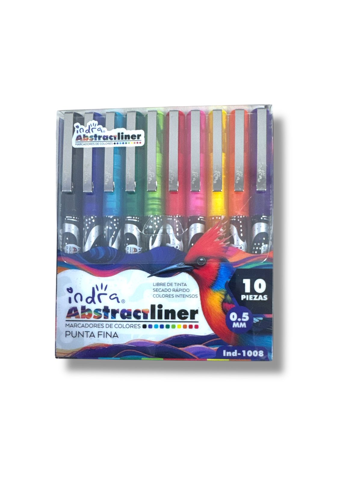 Plumas punta fina 0.5mm 10 pzas ind-1008