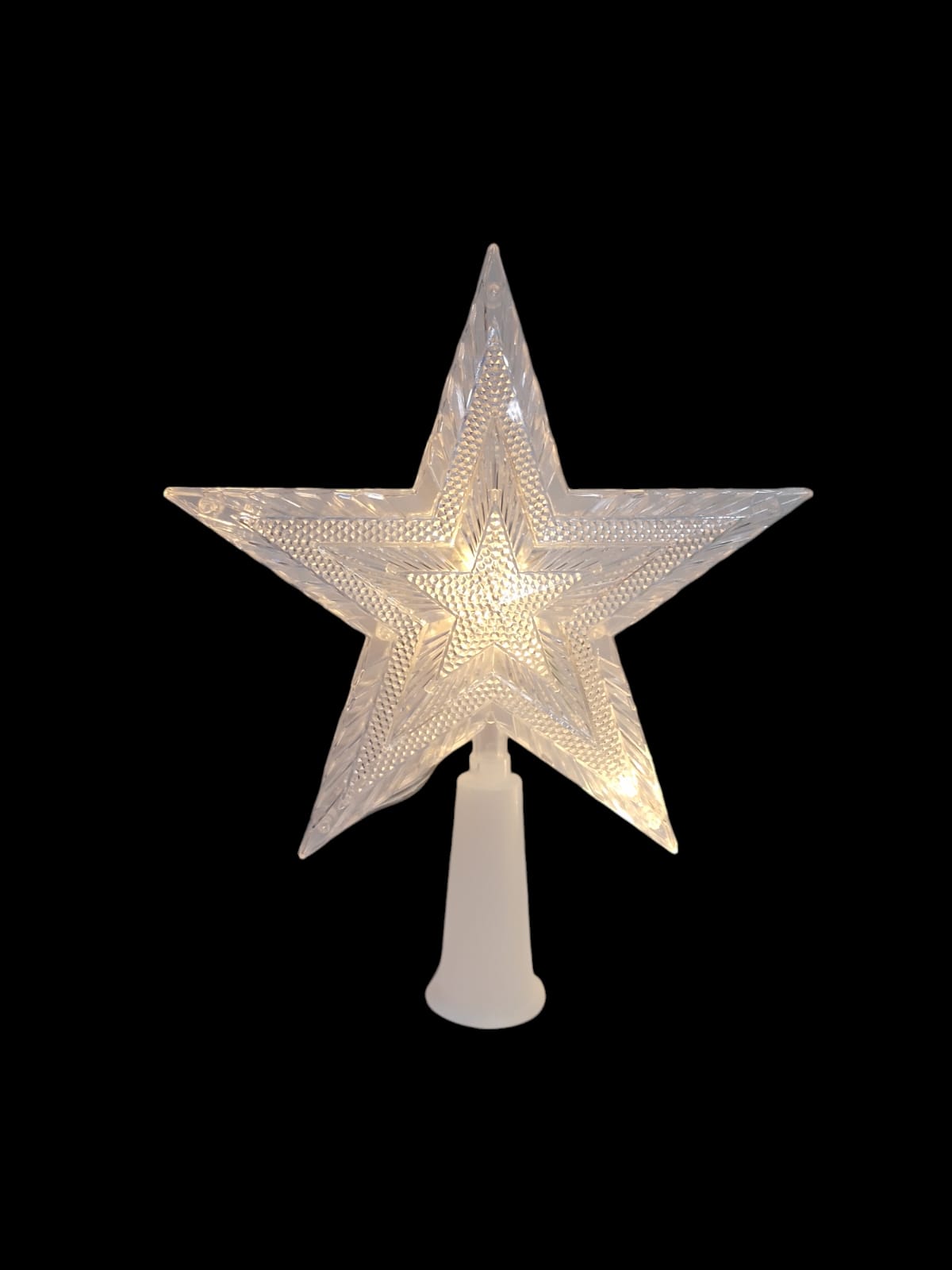 Punta de arból en forma de estrella Cantidad de luces: 8 luces Medida: 15 cm Información eléctrica: 120V~60Hz 6W Tipo...