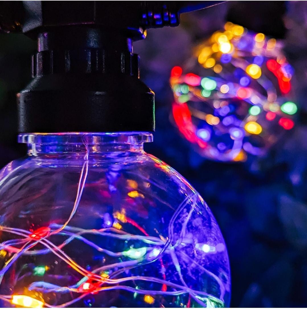 Cantidad de luces: 100 luces Cantidad de esferas: 10 esferas Medida: 4mts Información eléctrica: 120V~60Hz 17W Tipo de cable: CXTW...