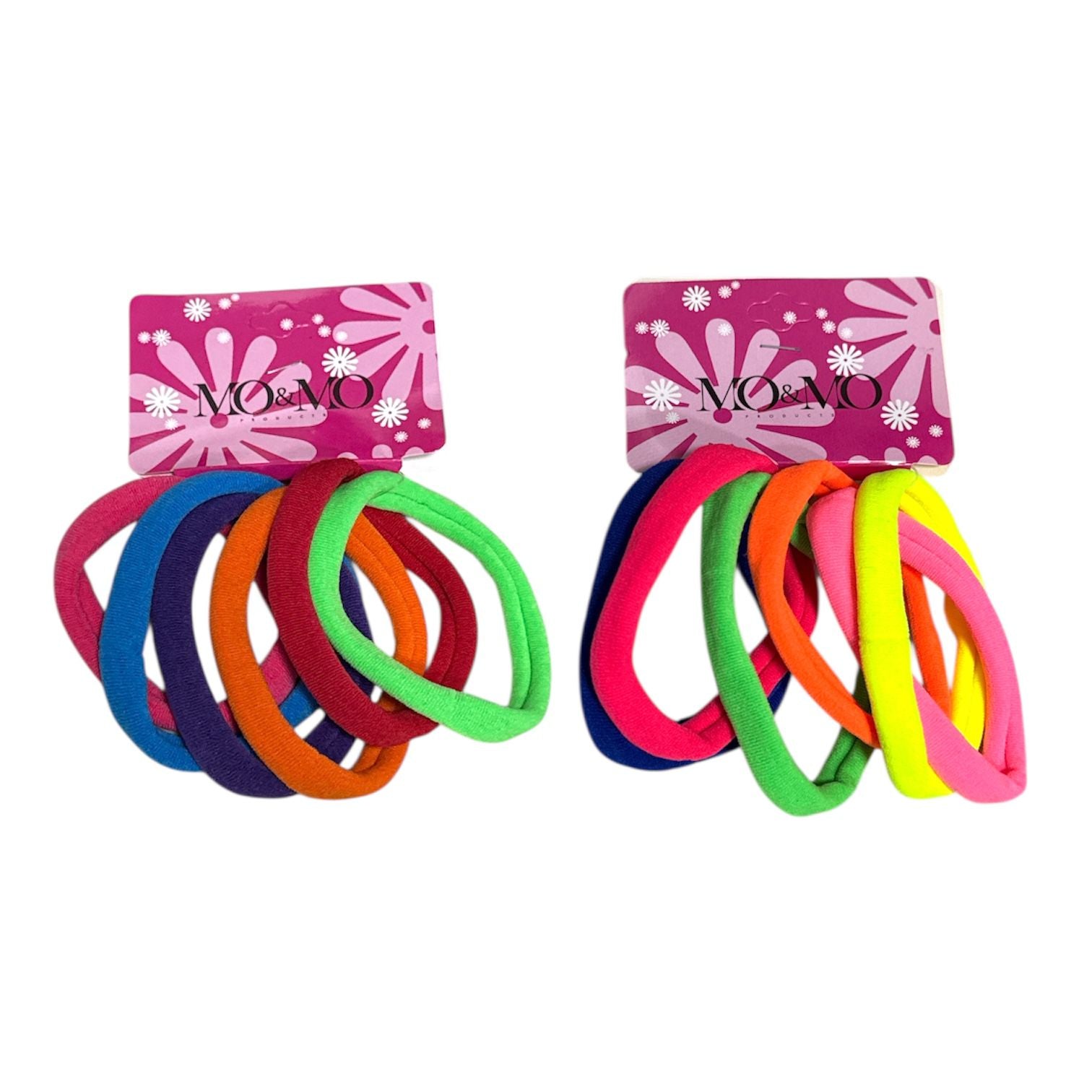 Cartón con 6 donas ligas licra para cabello grandes elásticas en colores neon de 7 cm.