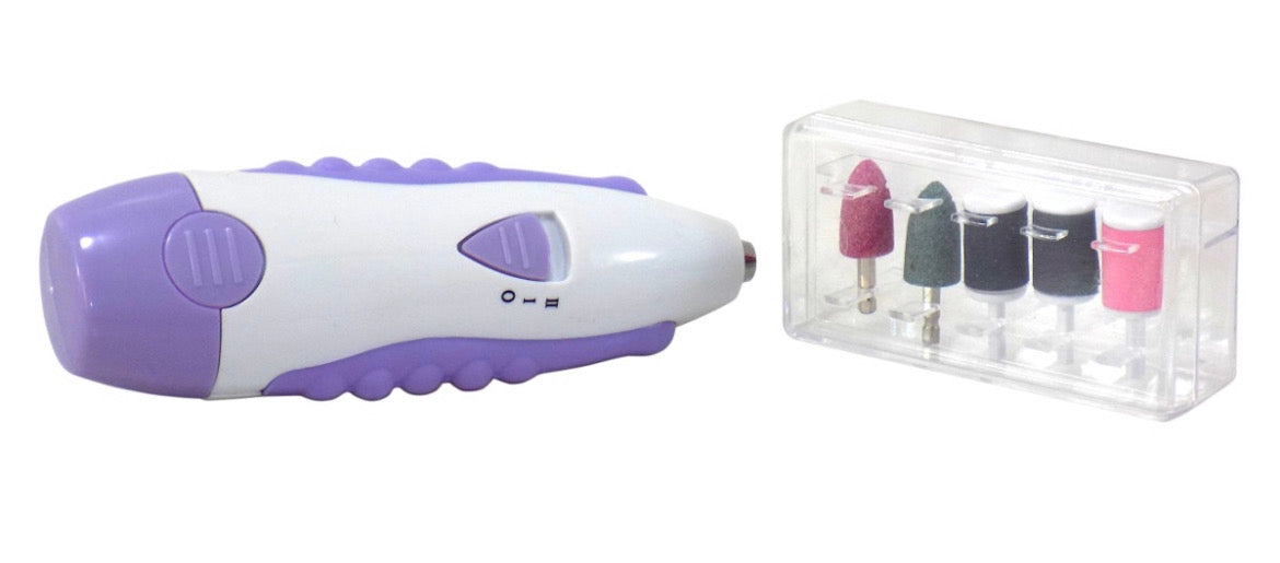 Torno para manicura practico, medida de 13 cm , requiere de 2 baterías AA 3V (no incluidas) Incluye 5 puntas...