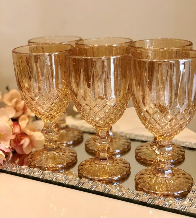 COPAS DE CRISTAL PARA AGUA CONTENIDO: 6 PZAS COLOR: DORADO CAPACIDAD: 340ML