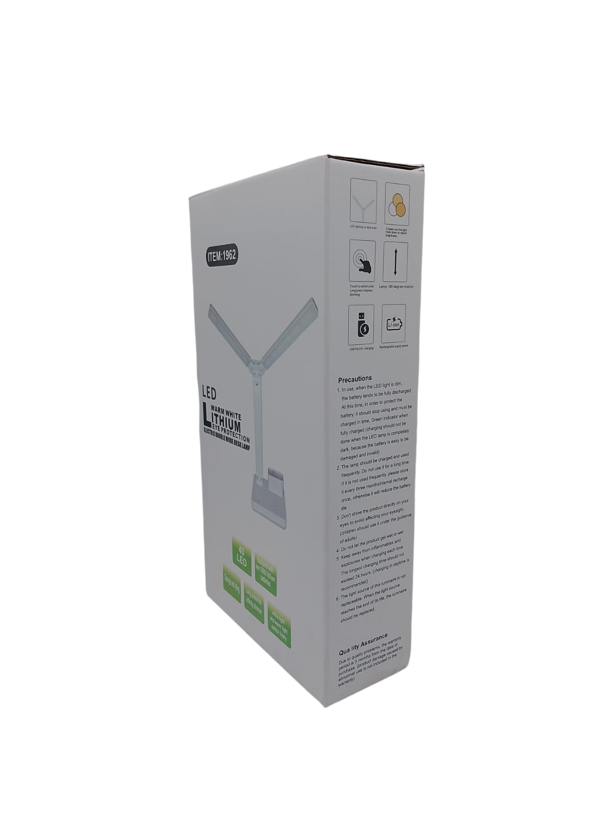 Lampara de luz blanca portátil de 30W con interruptor y puesto USB para carga. Duración de hasta 6 horas.