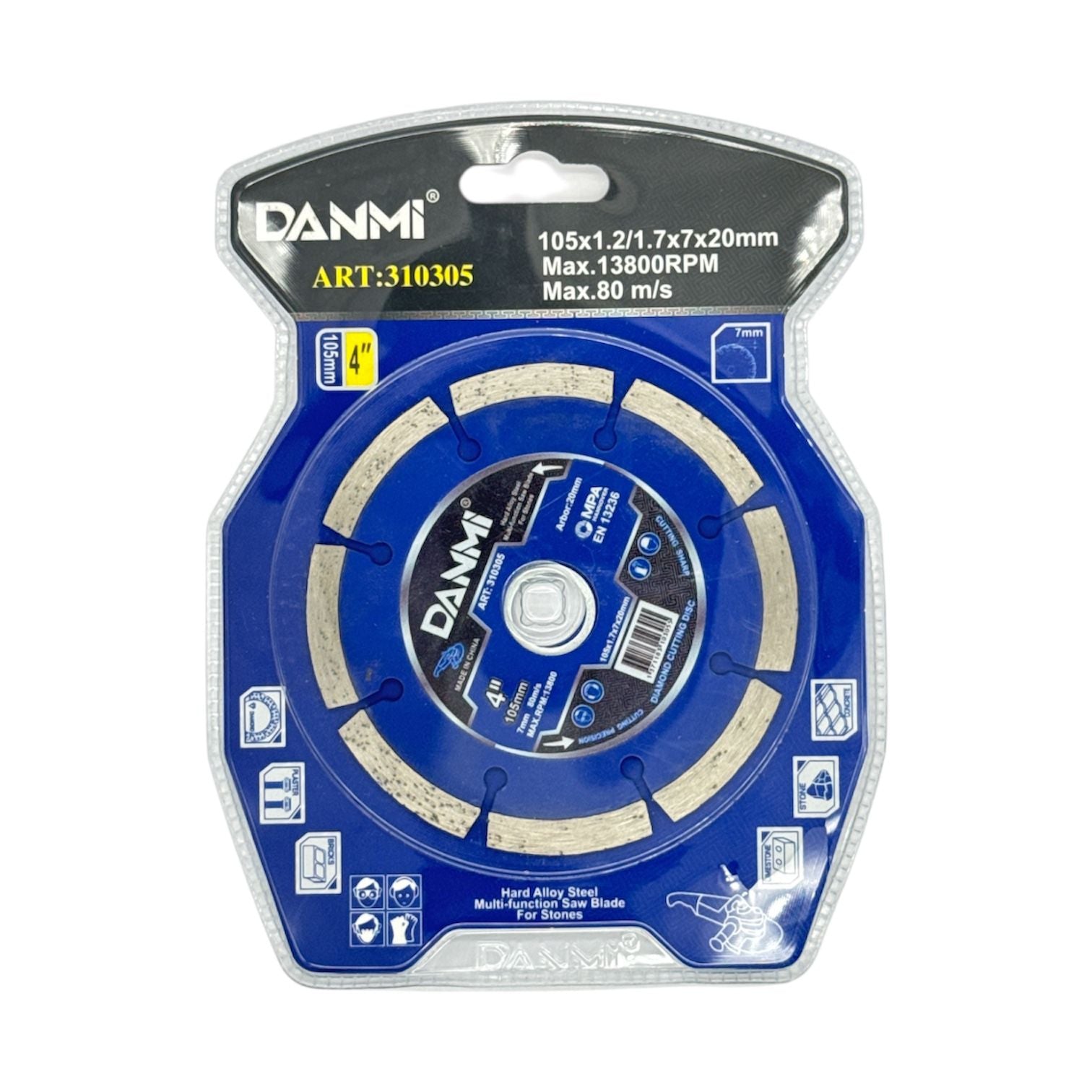 Disco de corte diamantado multiusos de la marca DANMI, modelo ART: 310305. Estos discos se utilizan para cortar materiales de construcción...