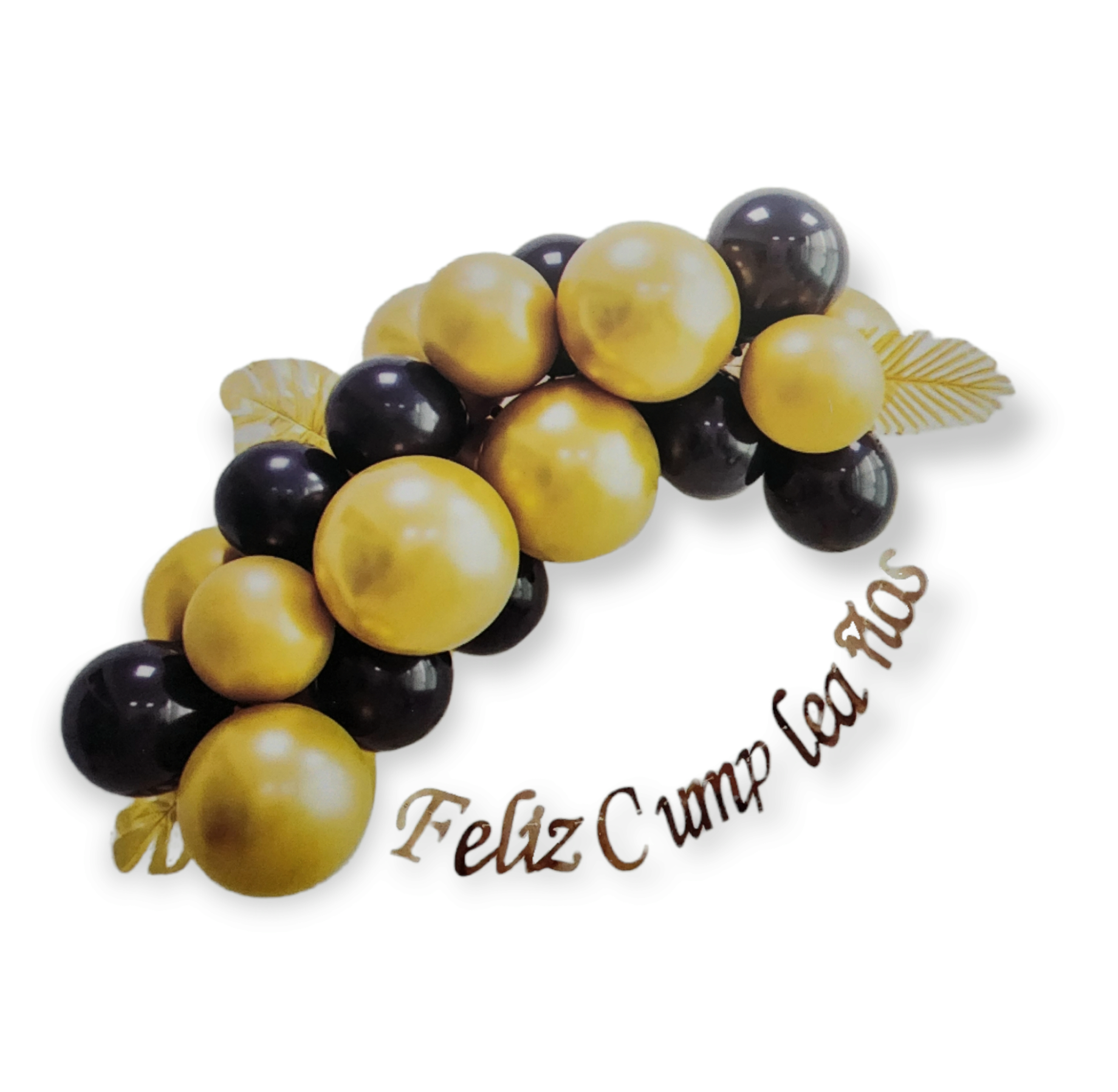 Cadena de globos color dorado con negro de 40 pzs incluyendo el letrero de "Feliz Cumpleaños"