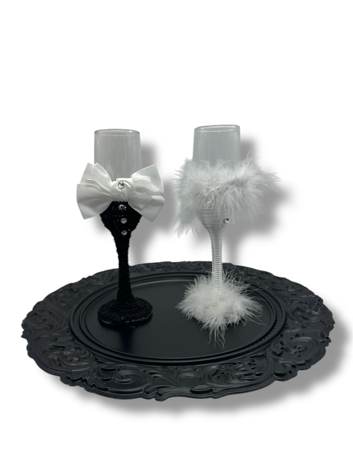 Juego de copas y cuchillos para boda 4pzas gz-9684