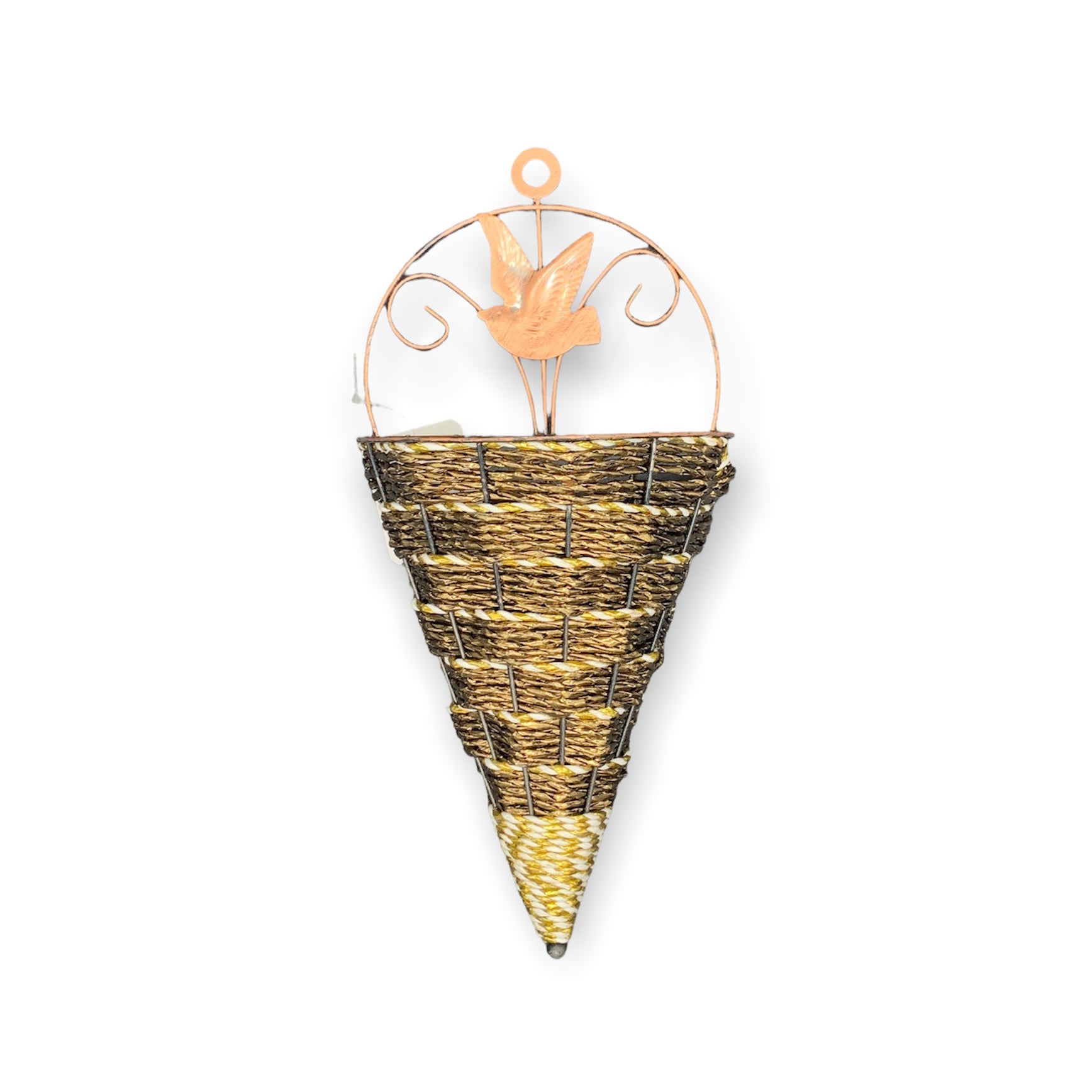 Maceta de pared tipo petate con base metálica de 23x10x17cm