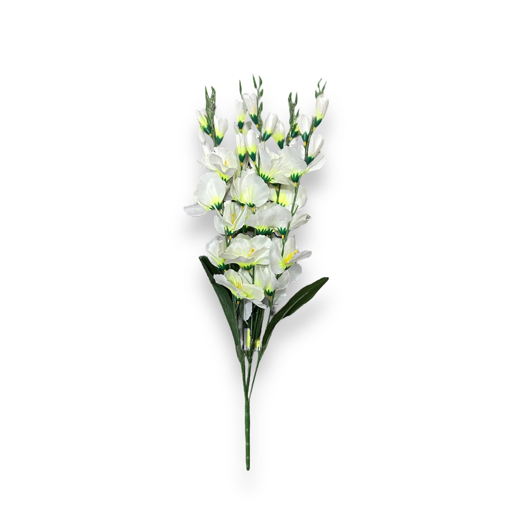 Ramo de flores artificiales de hojas bicolor, pétalos en tono verde y pistilo en tono negro con amarillo. 30 cm...