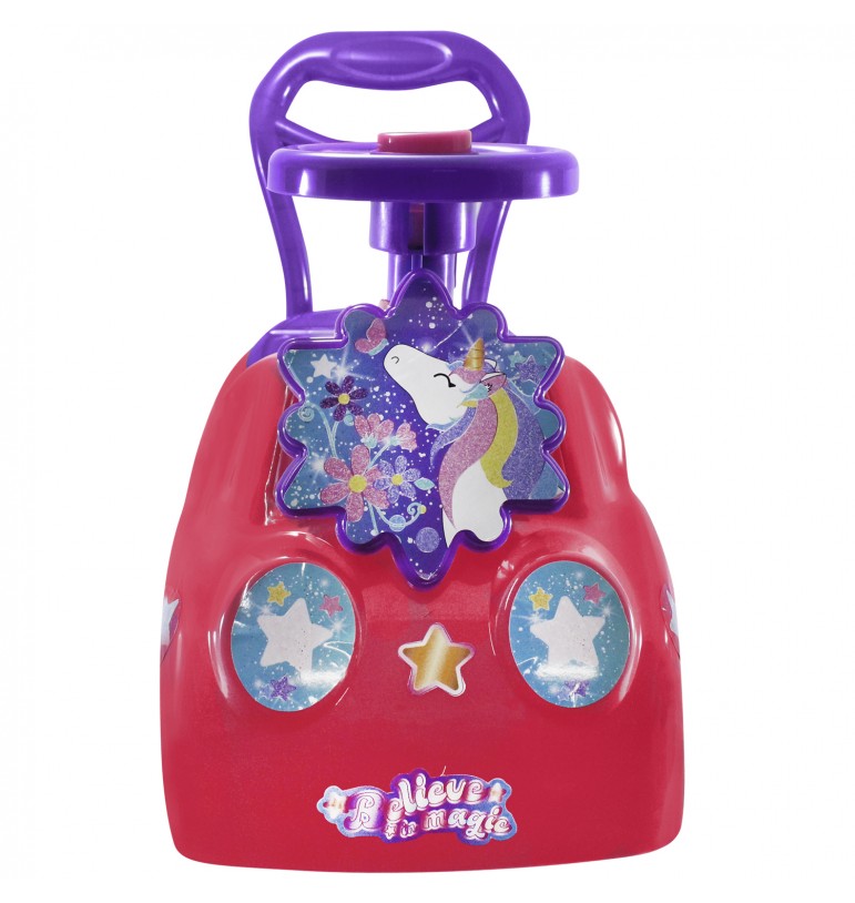 Cuenta con compartimento en el asiento para que tu niño lleve lo que quiera a todas partes. Con el volante...
