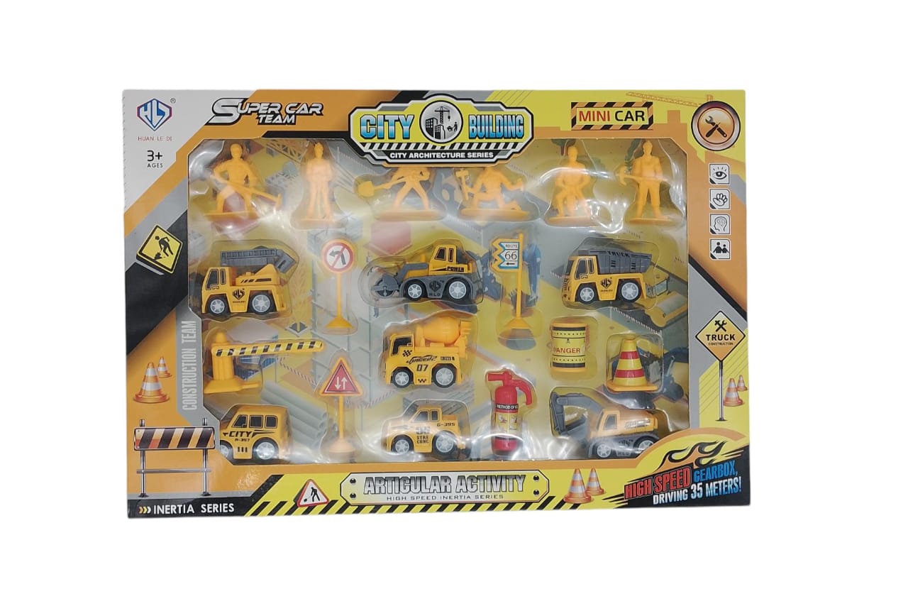 Vehículos de construcción. Medidas: 5x4 cm Recomendado para niños mayores de 3 años. Incluye vehículos, señalamientos y personitas.