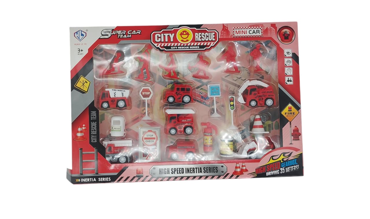 Vehículos de rescate Medidas: 5x4 cm Recomendado para niños mayores de 3 años. Incluye vehículos, señalamientos y personitas.
