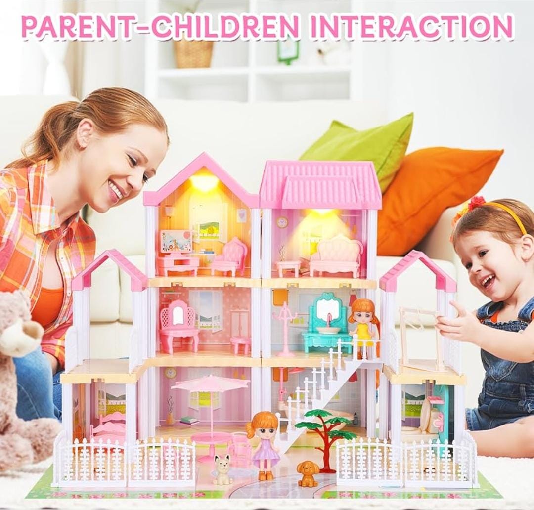 3+ Ejercita la imaginación de tu bebé y crea una casa de ensueño. Escena de simulación de villa Muñeca Luz...
