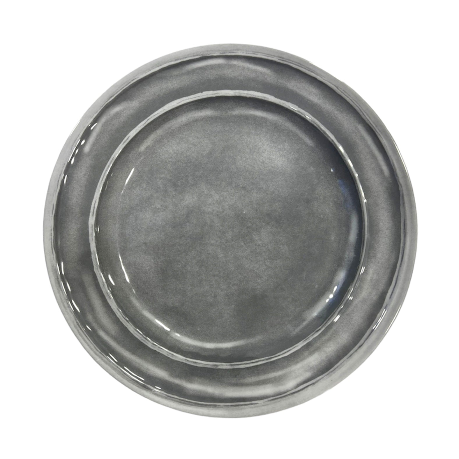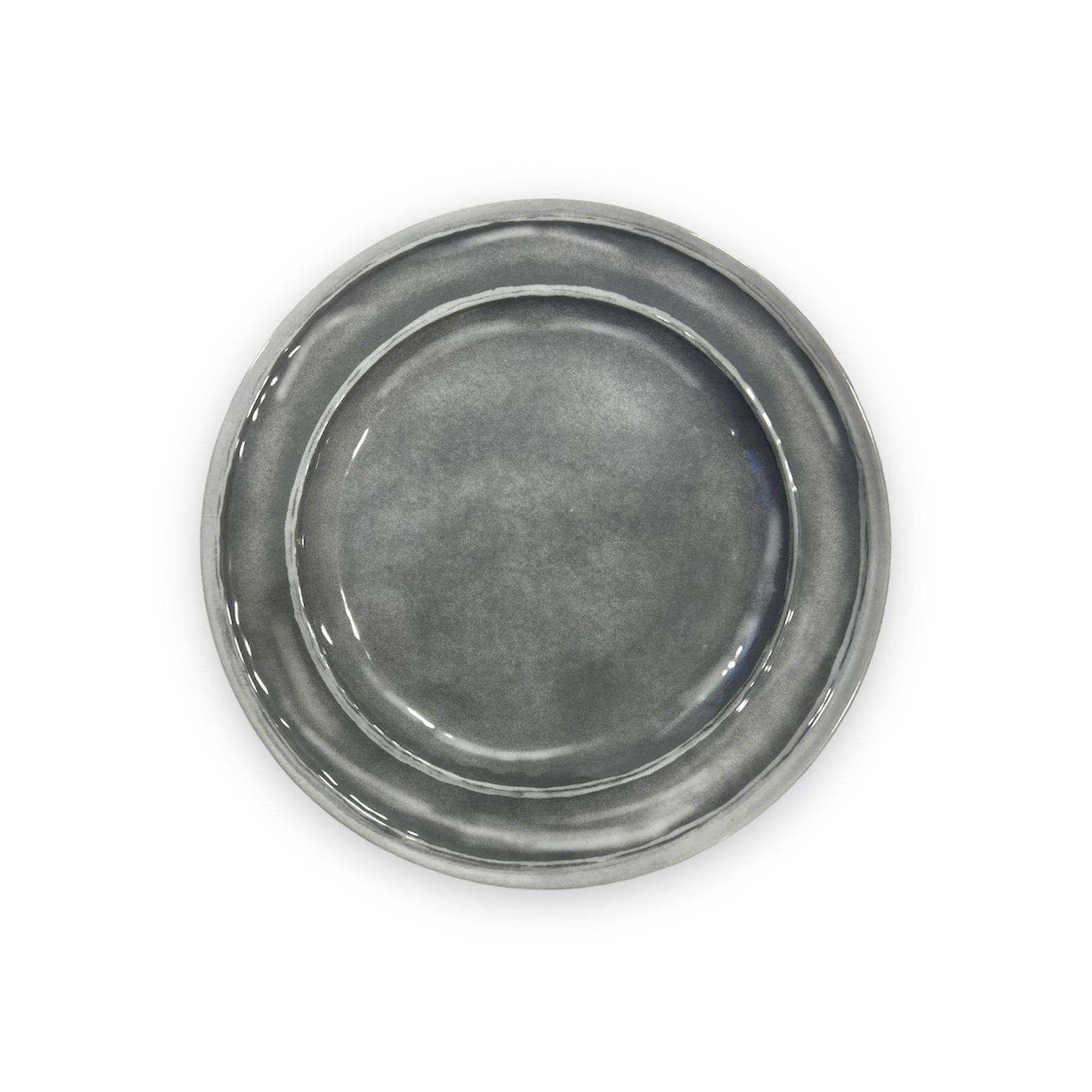 Plato plano de melamina de 21.5 cm de diámetro, 180 gr. en tono gris.