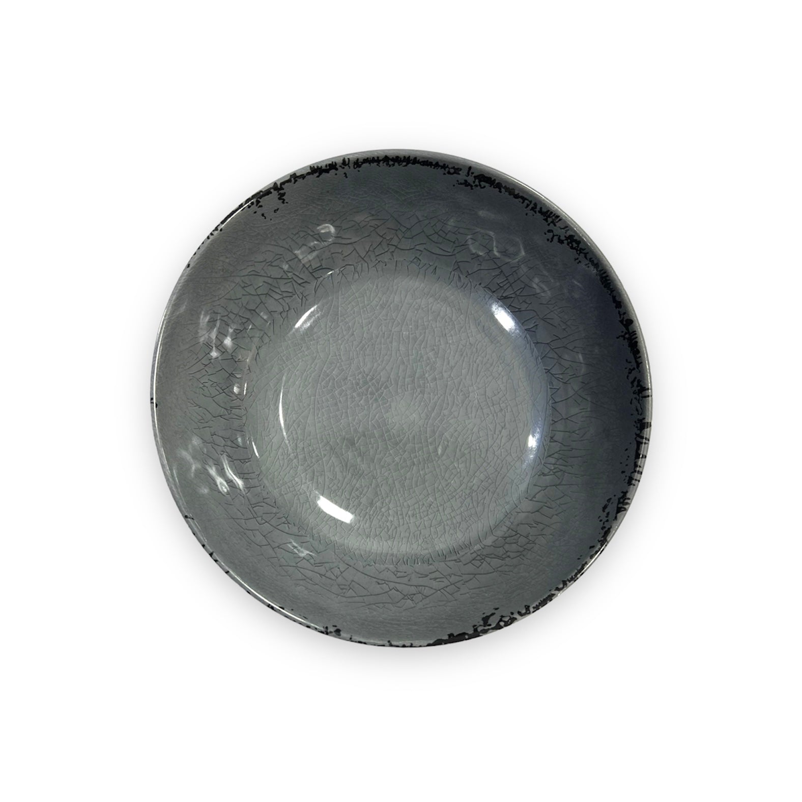 Plato hondo sopero de melamina de 17.5 cm de diámetro x 5.6 cm de profundidad, 170 g, en tono gris.
