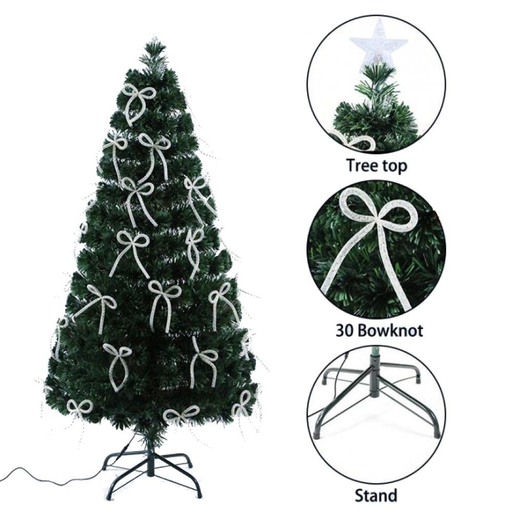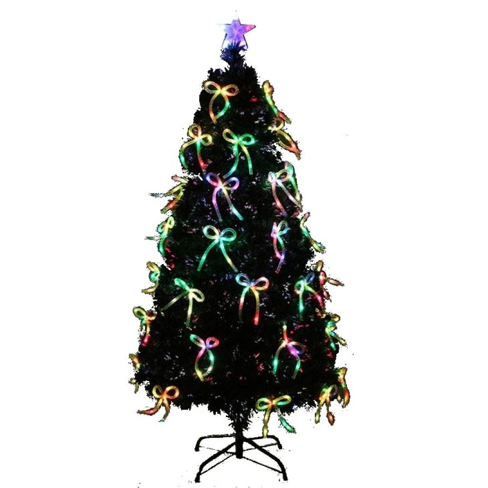 Árbol navideño con luces de colores fibra óptica, follaje verde, con base de metal y estrella con luces.