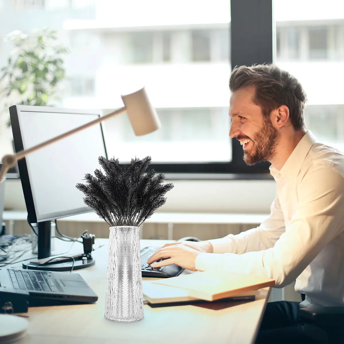 - [Regalo ideal]: decoración de escritorio es un regalo perfecto para a los que les gustan las plantas, puede dárselo y familiares de inauguración de la casa o fiestas de cumpleaños.