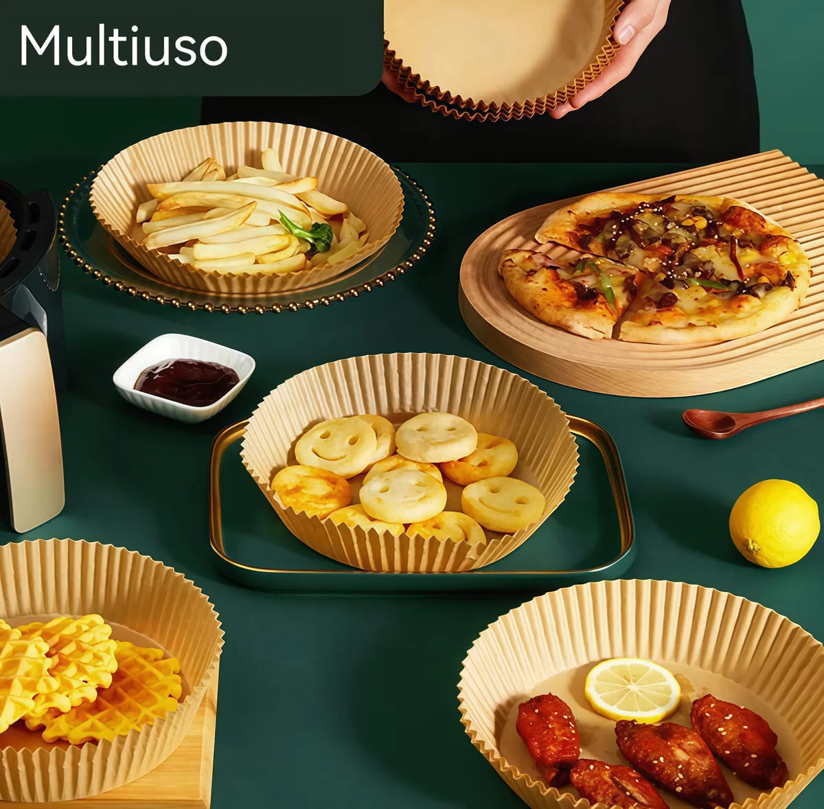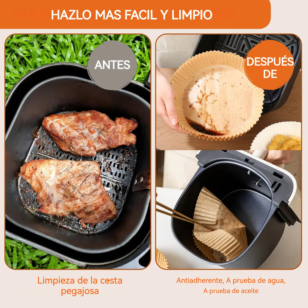 Haz tu vida mas fácil con estos moldes desechables circulares y olvídate de la incomodidad de lavar el air fryer y que se llene de grasa.