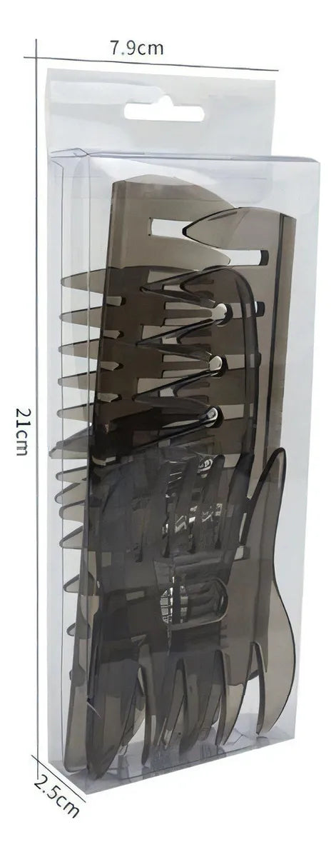 Incluye varias formas, anchos y densidades de púas. Las púas son suaves y redondeadas para peinar cómodamente y masajear el cuero cabelludo sin dañarlo. Adecuado para todo tipo de cabello, incluyendo cabello largo, rizos naturales o cabello seco/húmedo. Ideal para crear diferentes estilos de peinado con aceite o para uso en barbería.