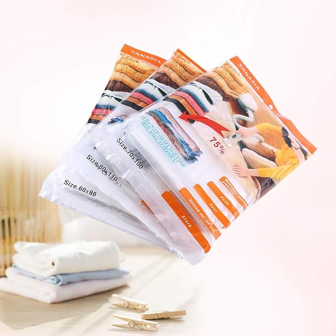 - Bolsa de almacenamiento al vacío: puede proteger su ropa, mantas y almohadas para que se almacenen de manera segura al no sufrir el riesgo de bacterias, moho, crecimiento de microorganismos o cualquier otro factor dañino.