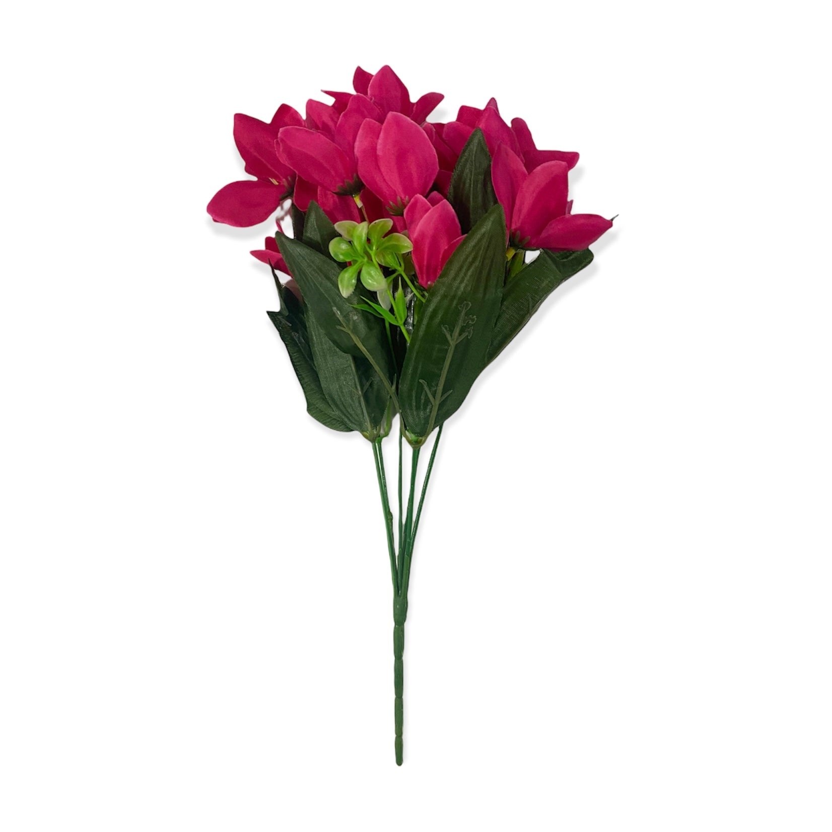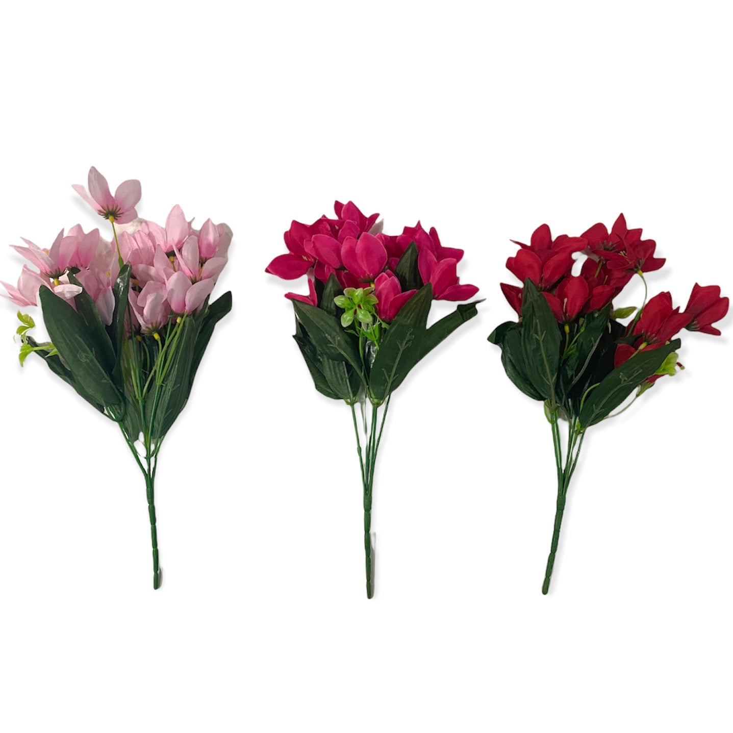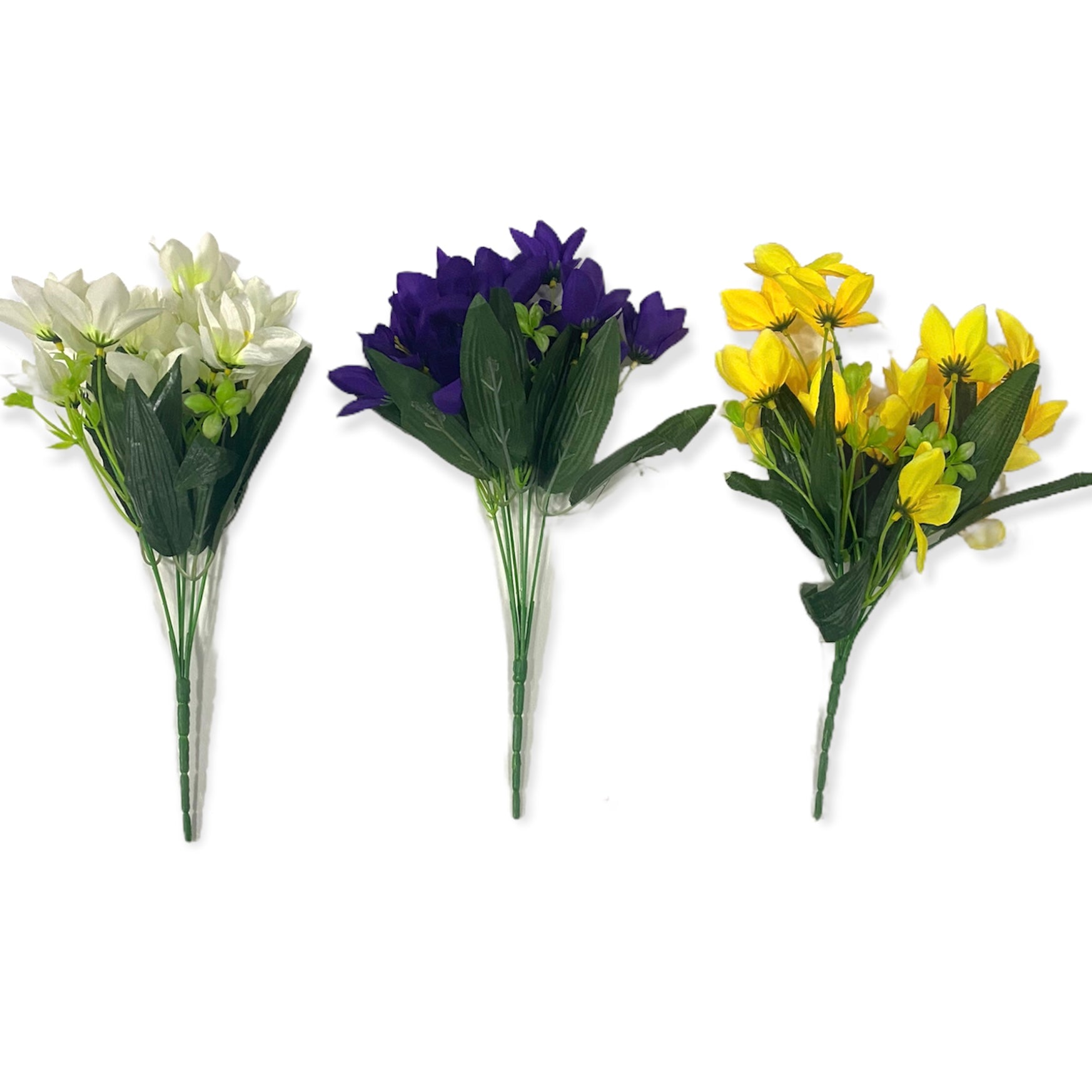 Ramo de flores artificiales con flores mini plastificadas en tono verde con hojas, 30 cm de alto.