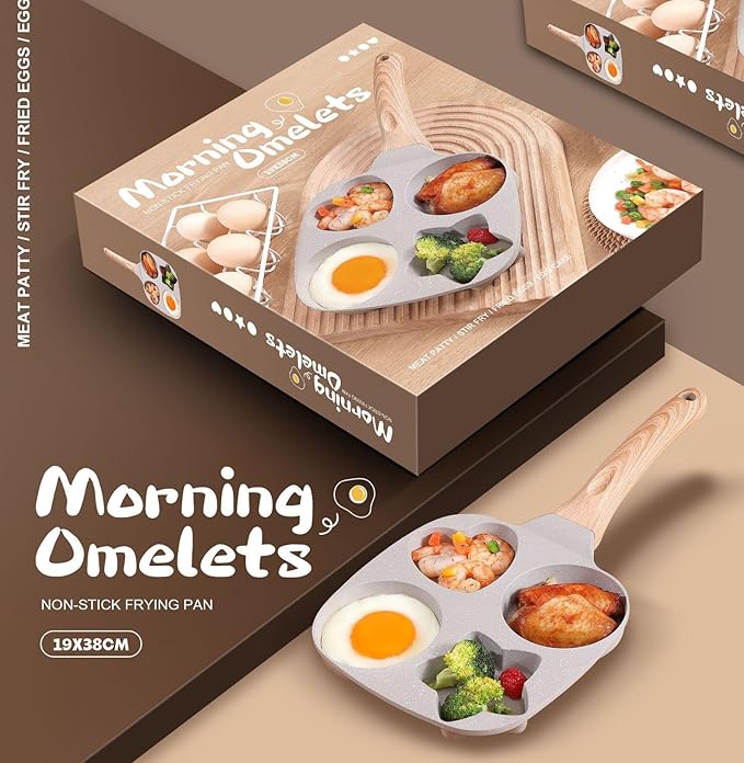 - 【Diseño de múltiples etapas】La sartén para huevos fritos está diseñada con cuatro agujeros, perfecta para cocinar huevos, tocino, hamburguesas, panqueques, etc. al mismo tiempo. Ahorre mucho tiempo y energía, hace que cocinar sea más rápido y más f