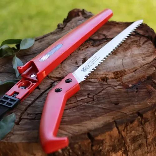 La funda se puede sujetar al cinturón mientras se usa la sierra, lo que facilita y hace que sea práctica de llevar. Además, protege la hoja cuando no se usa. Cabe destacar que la funda es ajustable y puede ser utilizada tanto por diestros como por zurdos. El sistema de afilado de esta herramienta no tiene dientes bloqueados, y el corte se realiza simplemente tirando de la sierra. Al empujarla, la sierra se libera, evitando que se enganche, se tuerza y se rompa. La hoja es cónica, ya que es más delgada en la parte superior y más gruesa en la base, donde se encuentran los dientes, lo que le proporciona mayor resistencia. Una vez que la hoja se desgasta naturalmente por el uso, se puede comprar por separado, eliminando así la necesidad de comprar la sierra completa de nuevo.