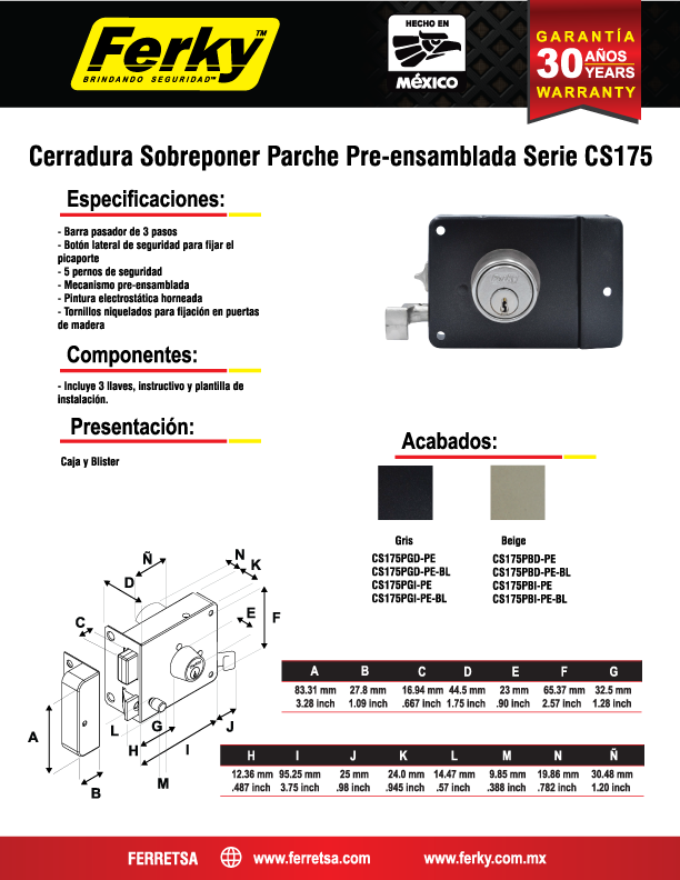 Las cerraduras de sobreponer ofrecen un nivel de seguridad alto, ya que el mecanismo de bloqueo se encuentra en el interior del cilindro, lo que dificulta su manipulación externa. Estas cerraduras son adecuadas para una variedad de aplicaciones, incluyendo puertas de entrada, puertas de garaje, portones y más.