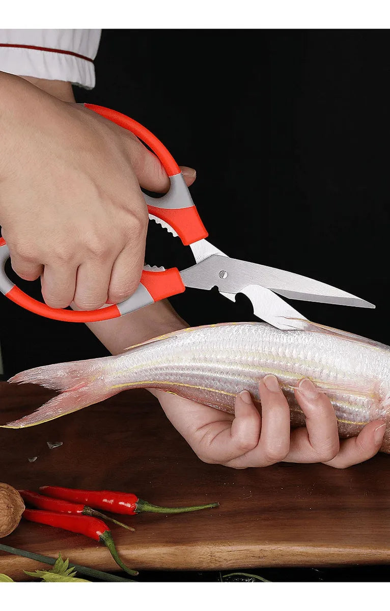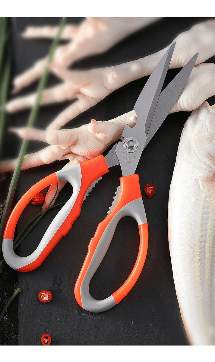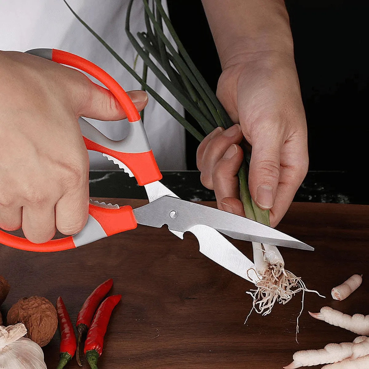 ¡No busques más, nuestras tijeras de cocina multifuncionales! Con hojas afiladas y duraderas y un agarre cómodo, estas tijeras pueden cortar fácilmente cualquier cosa, desde aves y verduras hasta papel y tela. Además, gracias a su diseño versátil, no son solo para cocinar, sino también para manualidades, jardinería y mucho más. Si eres un cocinero casero ocupado, un chef experimentado o simplemente necesitas unas tijeras fiables para las tareas diarias, nuestras tijeras de cocina multifuncionales son la elección perfecta. ¡Pida la suya hoy mismo y experimente la facilidad y conveniencia de cortar, recortar y rebanar con facilidad!